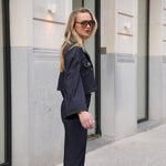 This dark blue denim jacket delivers a modern take on a wardrobe classic. With its cropped silhouette, structured fit, and contrast stitching, it’s designed for the modern woman who values timeless pieces with an edge.